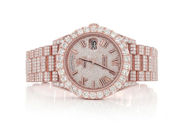Looking to elevate your style with a bold luxury statement? The Diamond Rolex Day Date Iced Out Watch for Men is where iconic design meets high-end brilliance. Known for its Presidential status and powerful presence, the Rolex Day Date rose gold watch for men is fully iced out with VVS-quality diamonds, catching the light and attention at every angle.